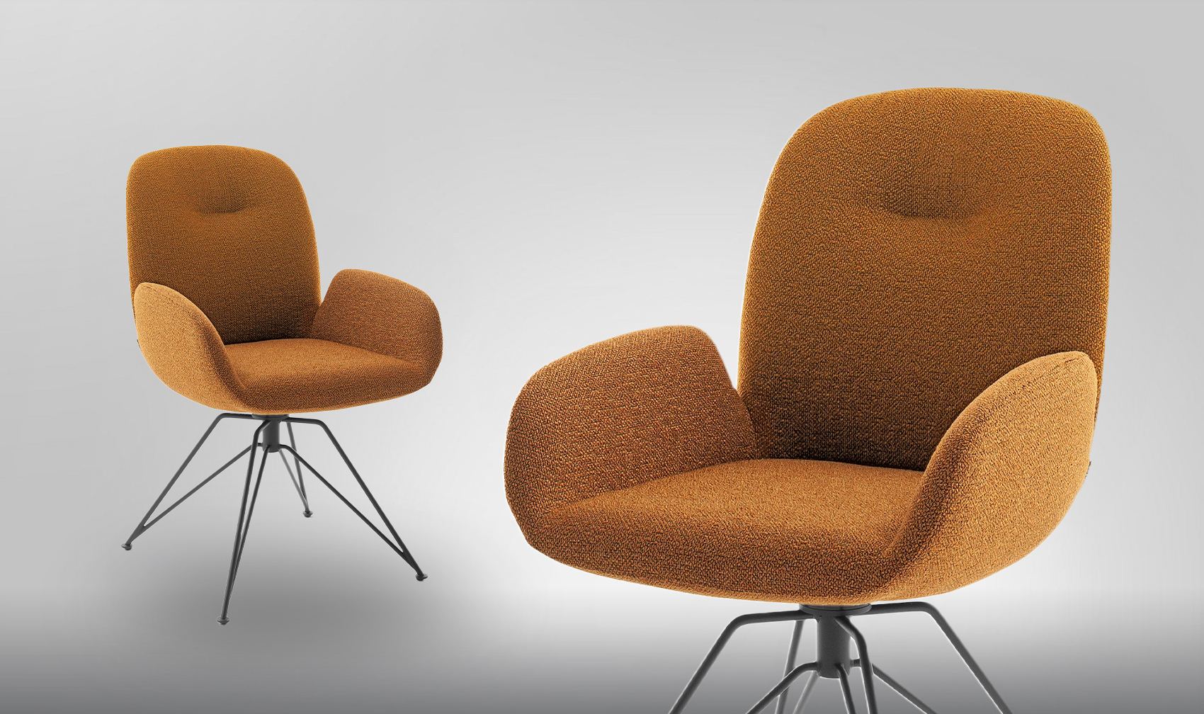 Dieses Produkt ist nur bei selektiven Handelspartnern erhältlich, gerne helfen wir Ihnen bei der Suche. Lieferbar mit Stoff- und Leder-Bezügen. Optional mit Drehfunktion und/oder Schwingfunktion.