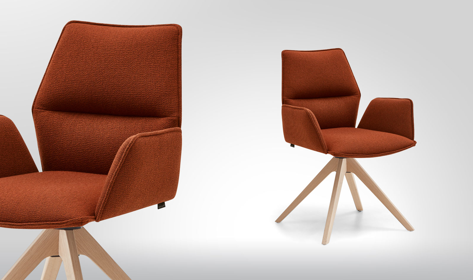 Wählen Sie bei Carola zwischen 5 Gestellvarianten. Optional mit Dreh- und/oder Schwingfunktion möglich.