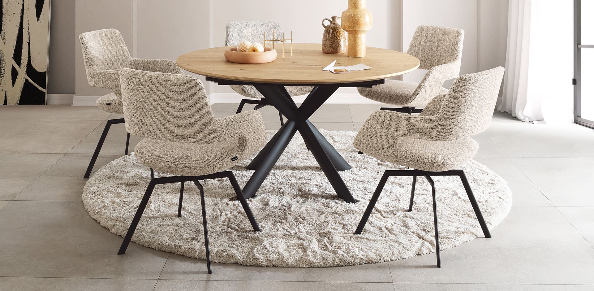 Für einen schönen Essplatz sollte in jedem Zuhause Platz sein - genauso wie für die größere, gemütliche Runde. Wir haben die Herausforderung gemeistert, in unsere runden Tische all’ unsere Handwerkskunst zu stecken.