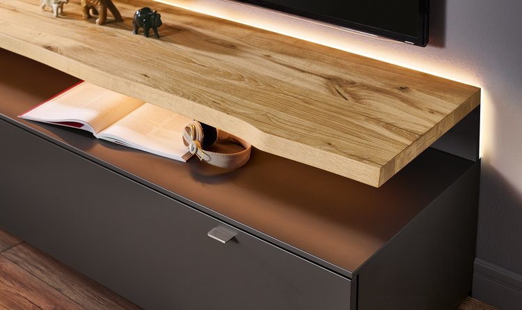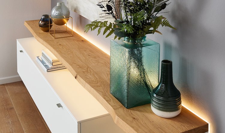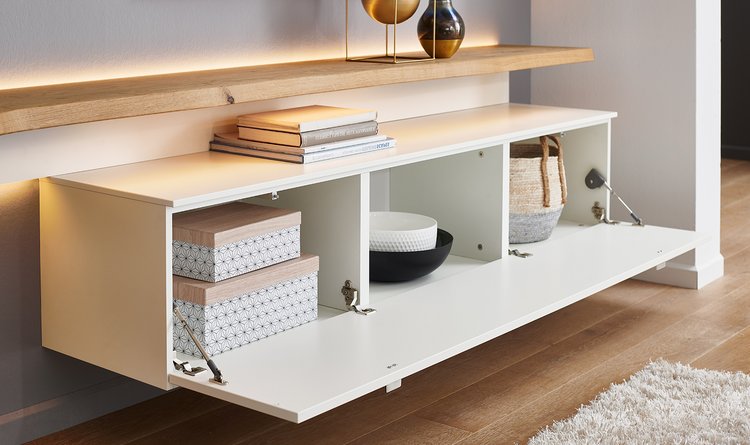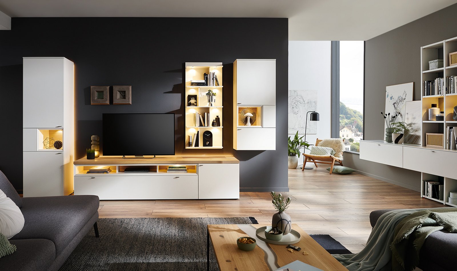X5 lässt Sie frei kombinieren – wenn Sie es möchten. Sie können auch auf vorkonfigurierte, stimmige Kombinationen zurückgreifen, beispielsweise aus Lowboard, Wandboard, Hängetype und Paneelen. Am Ende entscheiden nur zwei: Ihr Raum. Und Ihr Geschmack.