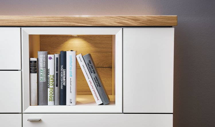 Beleuchtete offene Fächer setzen feine Akzente: zum Betonen von Accessoires oder einfach zum aufregend gut Aussehen.