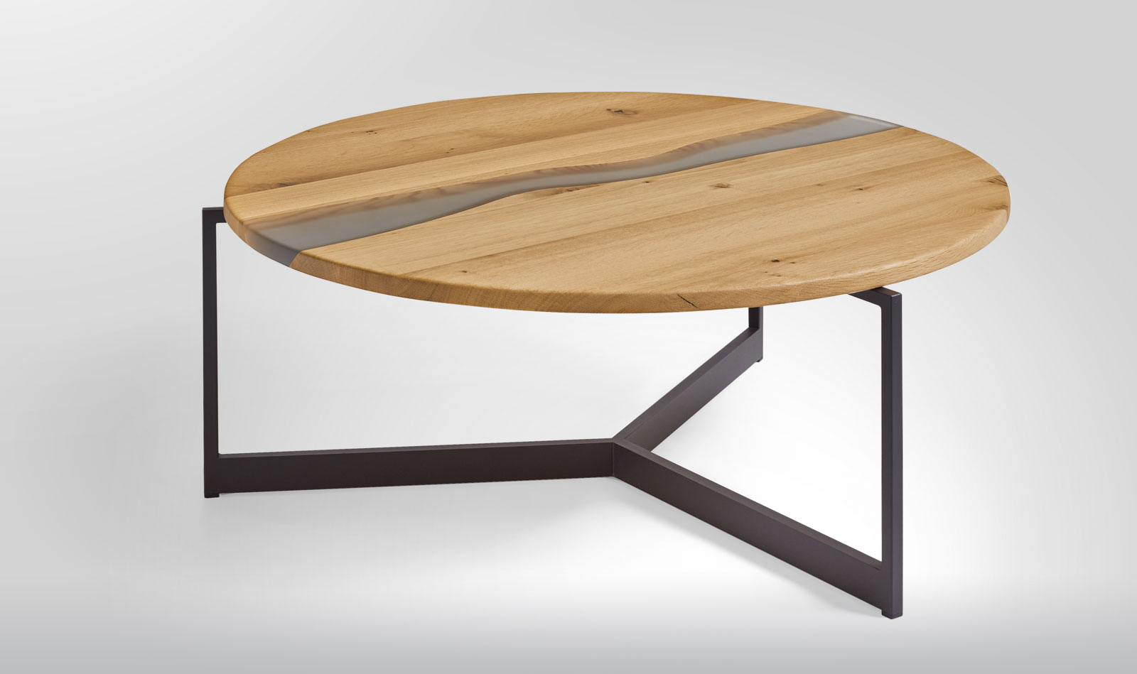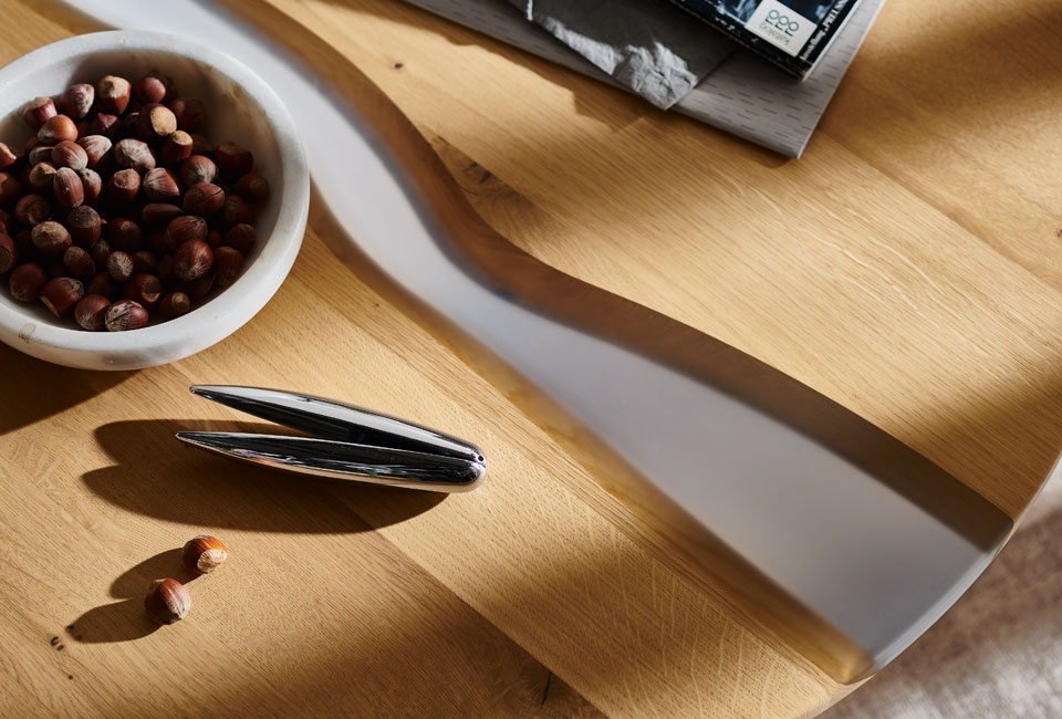 Wildeiche hell lackiert, massiv mit Harzeinlage, 25 mm