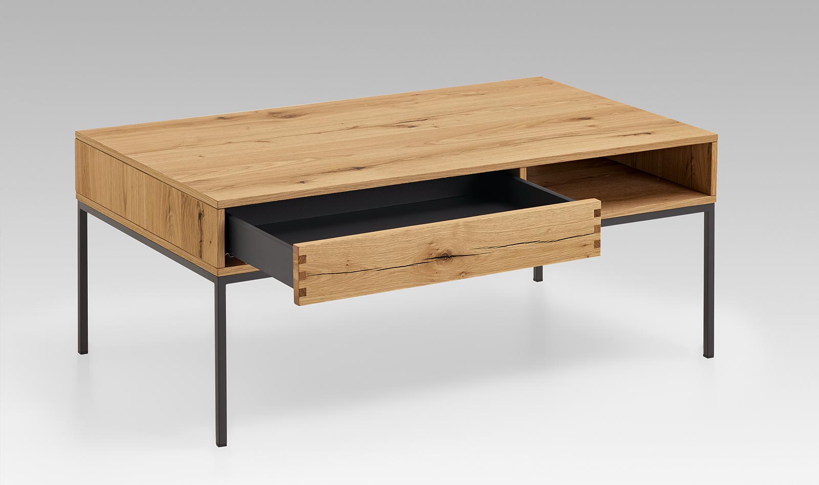 Mit einseitigem Push-To-Open-Schubkasten.