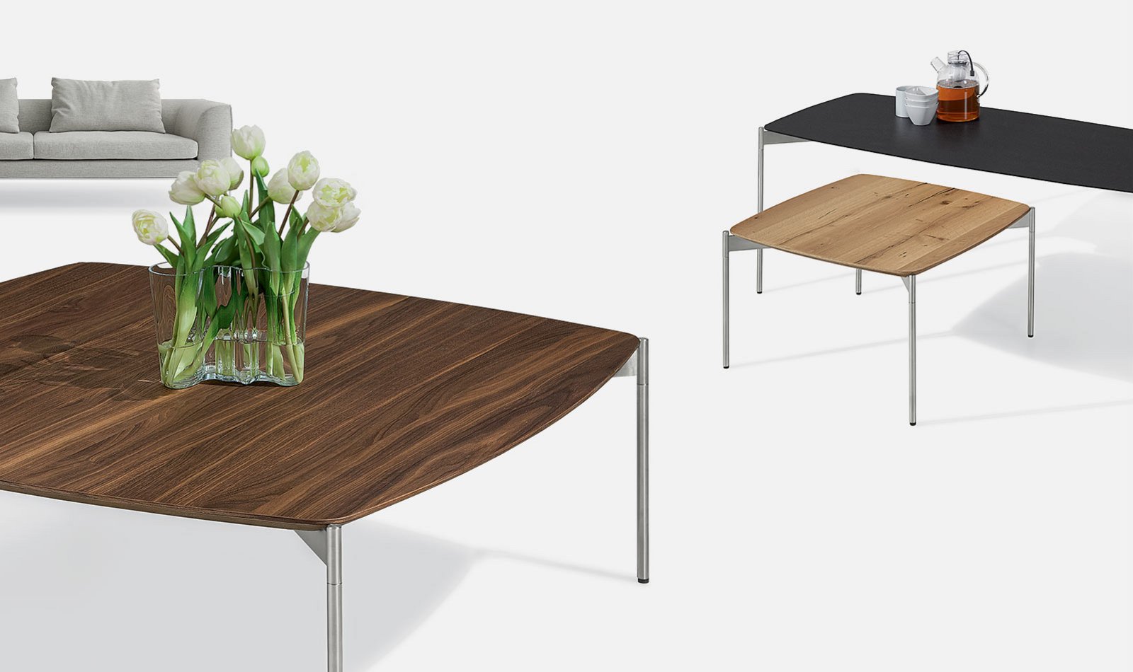 Freuen Sie sich auf erstklassige Materialqualität, handwerkliche Verarbeitung, fein geschwungene und gerundete Tischkanten – für vollendete Wohnkultur in unterschiedlichsten Raumsituationen.